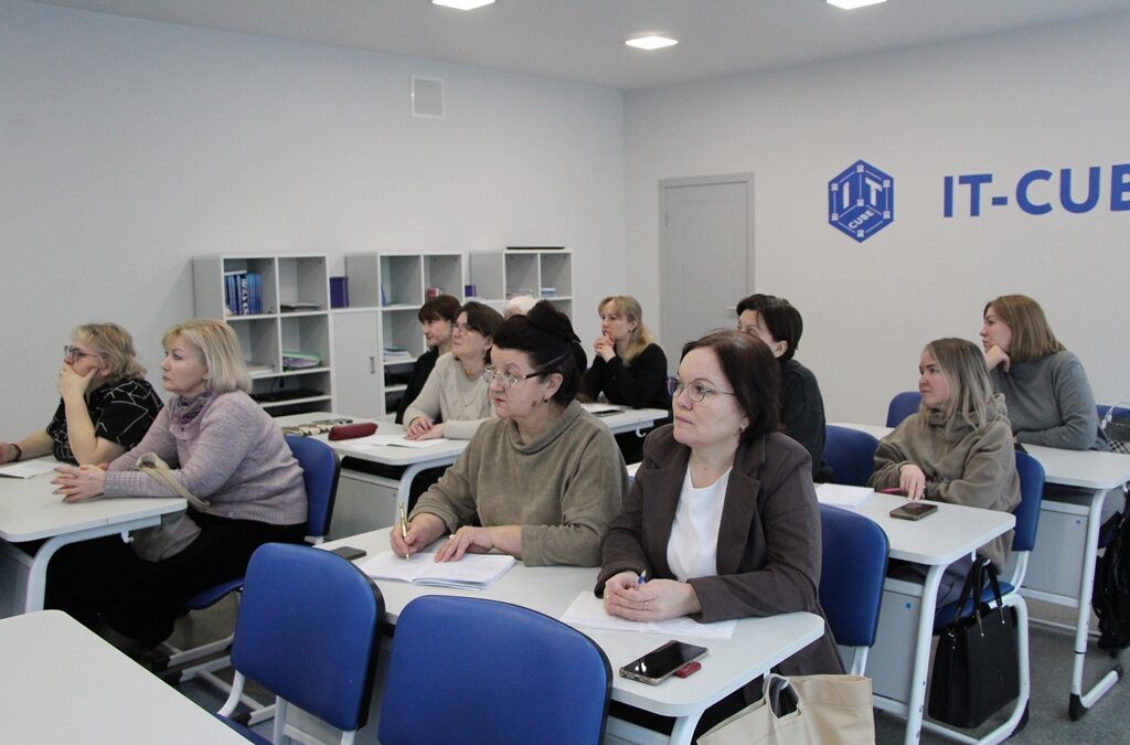 Проведение одного курсового дня на базе лицея и Центров цифрового образования в рамках сотрудничества лицея с Институтом развития образования Кировской области стало хорошей традицией. К нам приезжают в гости учителя различных предметов, советники по воспитания, организаторы, педагоги дополнительного образования, воспитатели детских садов. Участниками курсов являются педагоги города Вятские Поляны, Вятскополянского и Малмыжского районов. Теоретические вопросы они изучают на базе Центра повышения квалификации педагогов в городе Вятские Поляны, а к нам приходят, чтобы на практике увидеть, как применяются ИТ-технологии в образовании, какие программы изучают современные школьники, какие результаты достигаются — увидеть все это мы предлагаем на примере работы Центра цифрового образования «IT-куб» и специализированного кабинета «БАС».